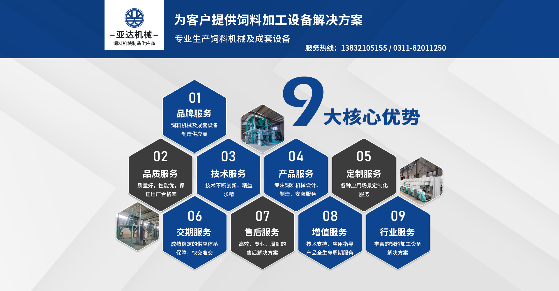 / Technical articles /飼料機械的維護與保養對于保證設備的正常運行、延長設備使用壽命、提高生產效率和飼料質量具有重要意義。下面亞達飼料機械將從清潔、潤滑、檢查、易損件更換等方面介紹飼料機械的維護與保養方法和注意事項。